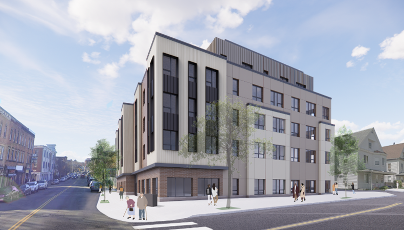 The Proposed Project is a new five-story elevator building with 51 income- and age-restricted rental housing units. The building will be 48,340 gross square feet. The flat-style units will be age-restricted to households 62 years old and older. There will be 4 studio units and 47 one-bedroom units. The building will include covered parking for 5 vehicles. Additional amenities will include a common room, terrace, landscaped courtyard, leasing office, management office, mail and package room, fitness center, and individual meeting rooms.