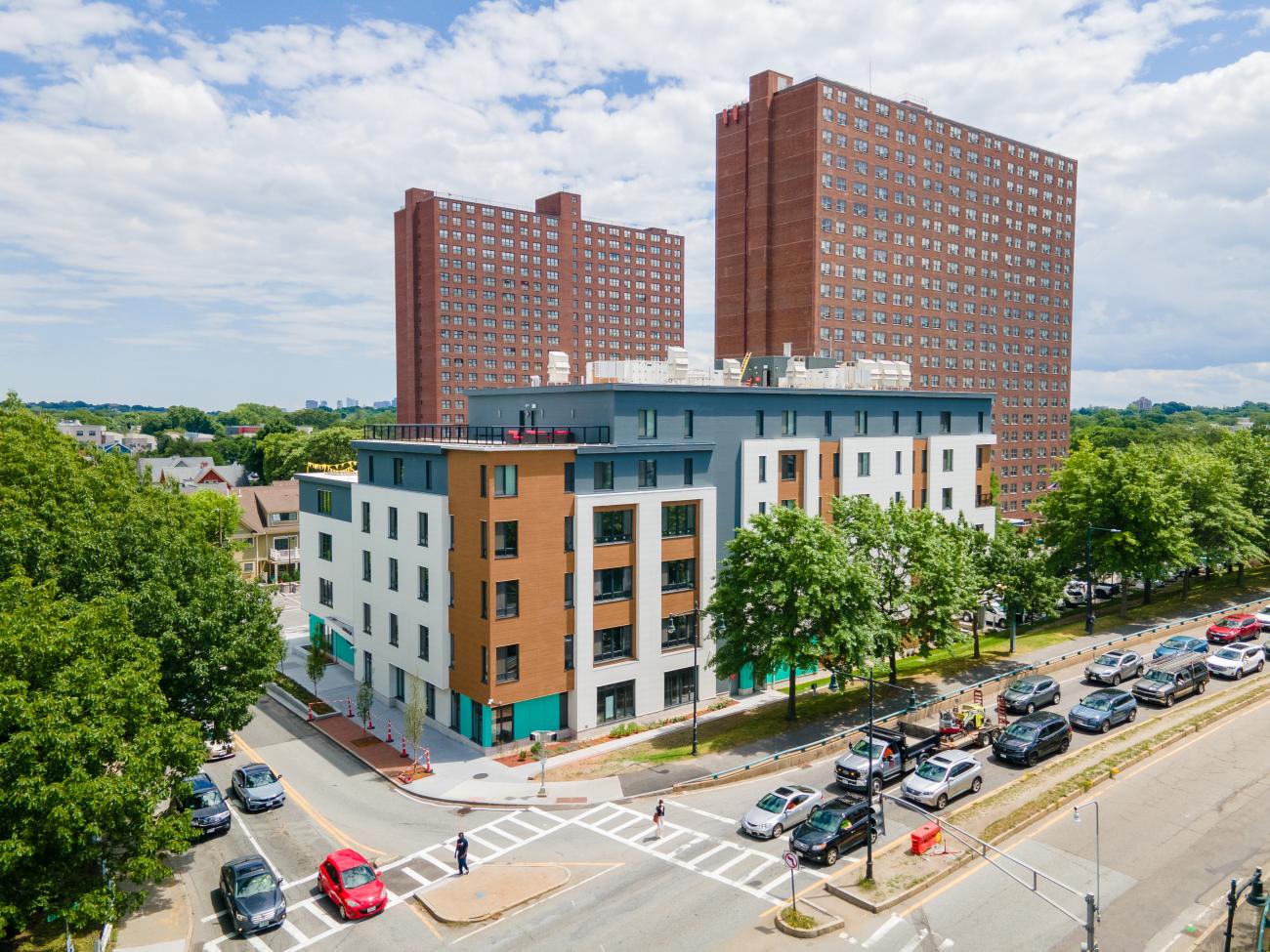 Rindge Commons is the creation of 101 units of affordable housing on the site of the Rindge Tower Apartments which has 273 affordable apartments. The project consists of 2 buildings which will be built in phases. Phase I will include 24 units of housing and 42,500 sf of commercial space. Phase II will include 77 units of housing. ------------------Building A will be certified PHIUS+ Core for residential portion of the building and PHIUS+ 2018 for commercial portion of the building. Residential – 27,600 sf includes 27 residential units and the supporting equipment and areas such as elevator, laundry, and corridors. Non-Residential – 36,300 sf includes trainng and community rooms as wellas potentially a health clinic. Integral to a PHIUS Certification is compliance with Energy Star New Construction, Indoor AirPlus, WaterSense, and Zero Energy Ready Homes certifications. In combination with third party RESNET approved quality assurance and quality control testing (NEI will be serving in the role of a Passive House Verifier) the building will exceed the Cambridge Green Buildign Requirements as outlined in Article 22.20.