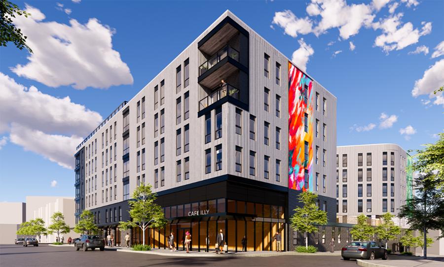 This 2025 NPC project will replace the existing auto body shops and parking with a new residential building on a single lot, with approximately 173,909 SF of gross floor area and approximately 200 residential units. The project also includes 2,100 SF of ground floor retail space, 7,200 SF of outdoor amenity space and 63 garage parking spaces to serve the project’s residents. This project also includes IDP artist units and 2,000 SF of artist space to serve artists within the Allston community.