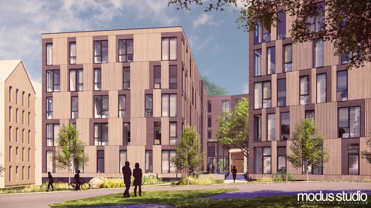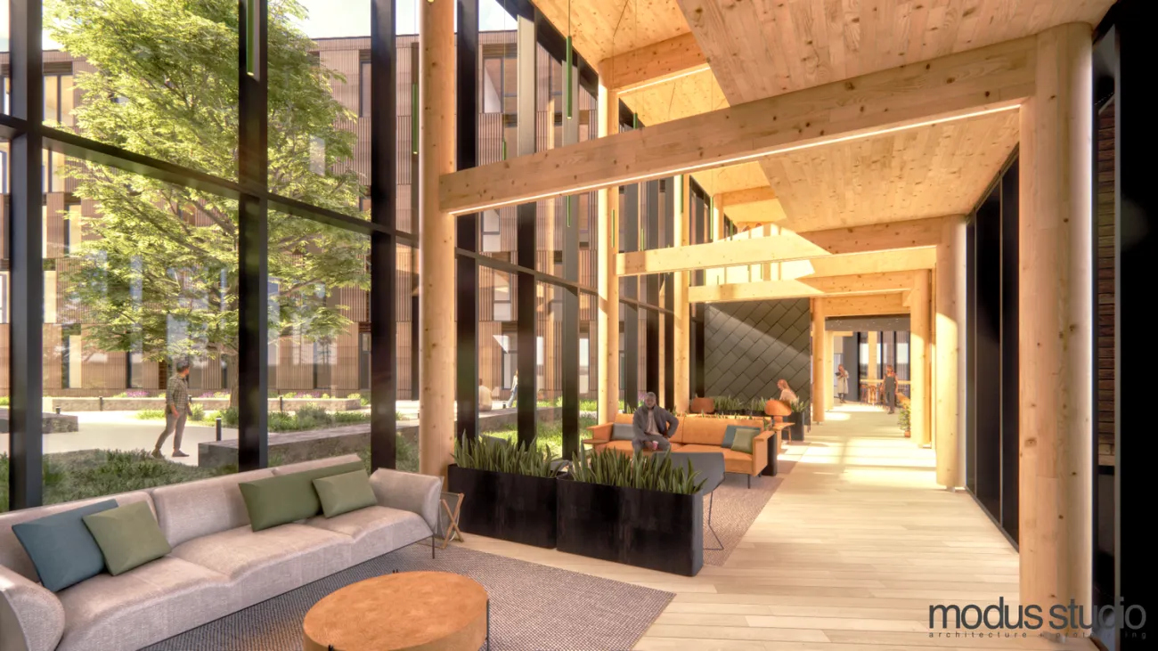 47 Olympia Place is a CLT, all electric, Passive House certified student housing project next door to it’s sister property, Olympia Place, and the University of Massachusetts.