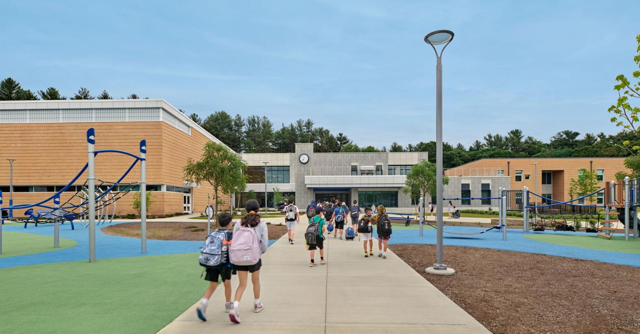 This new 105,000 sf middle school replaces an aging and over-capacityfacility built in the 1950s. In addition to modern, flexible learning environments, the new school also emphasizes the wellbeing of its occupants and the environment with its design.