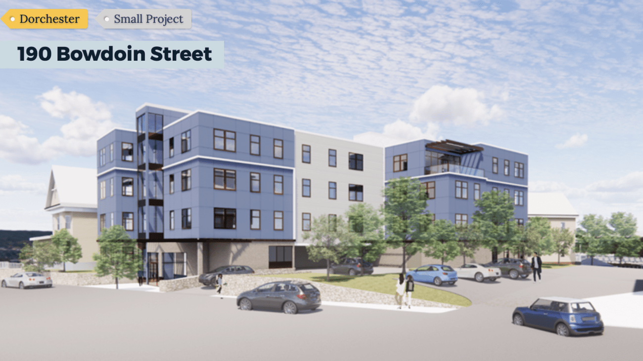 Hollins Park will be a 100% affordable new construction project providing 33 units of rental housing in the Greater Bowdoin-Geneva area of Dorchester. Two-thirds of these units will be two- and three-bedrooms to accommodate families. The project will be four stories and include 36 interior bike bike storage spots, eight exterior visitor bike parking spots, eight exterior vehicle parking spaces, and a community room with adjoining roof deck. Hollins Park draws inspiration from the surrounding Dorchester community and will mesh with the neighborhood's architecture.