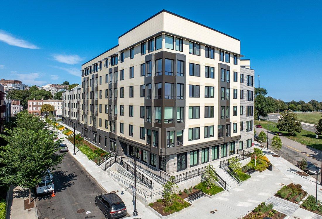 Old Colony Phase 5 is part of the efforts to update South Boston's affordable housing stock. Built on the site of an older development, this Final Phase will complete the 10-year redevelopment of Old Colony, weaving the community back into the fabric of South Boston and creating new view corridors both to downtown Boston and the waterfront. The landscaped open spaces will also improve stormwater runoff conditions and allow for groundwater infiltration.