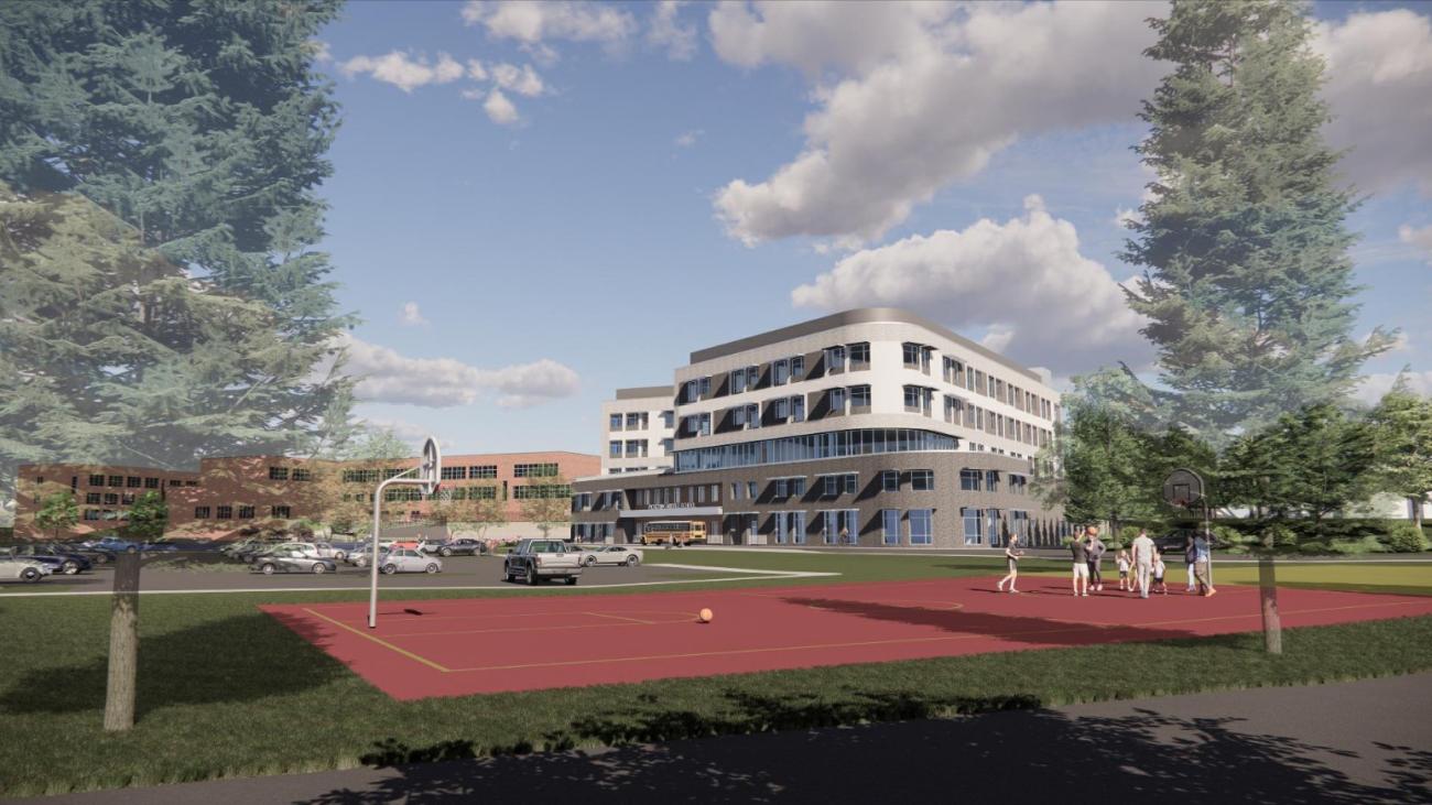 Pickering Middle School is a new five-story school with approximately 188,000 GSF located in Lynn, MA. The building's primary program includes classrooms, offices and conference rooms; assembly spaces such as theater, media center, cafeteria, and gym; and supporting spaces such as corridor, storage, and mechanical rooms.