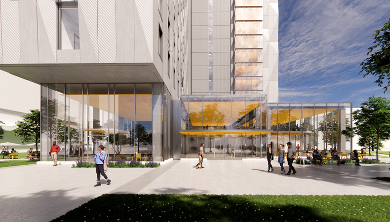 The Pike Residence Hall will consist of approximately 202,000 SF of GFA, 18-story student residence hall containing approximately 972 student beds along with approximately three Community Director apartments, student amenity spaces, a dining facility, a bicycle storage room, and other institutional facilities, such as an admissions center.