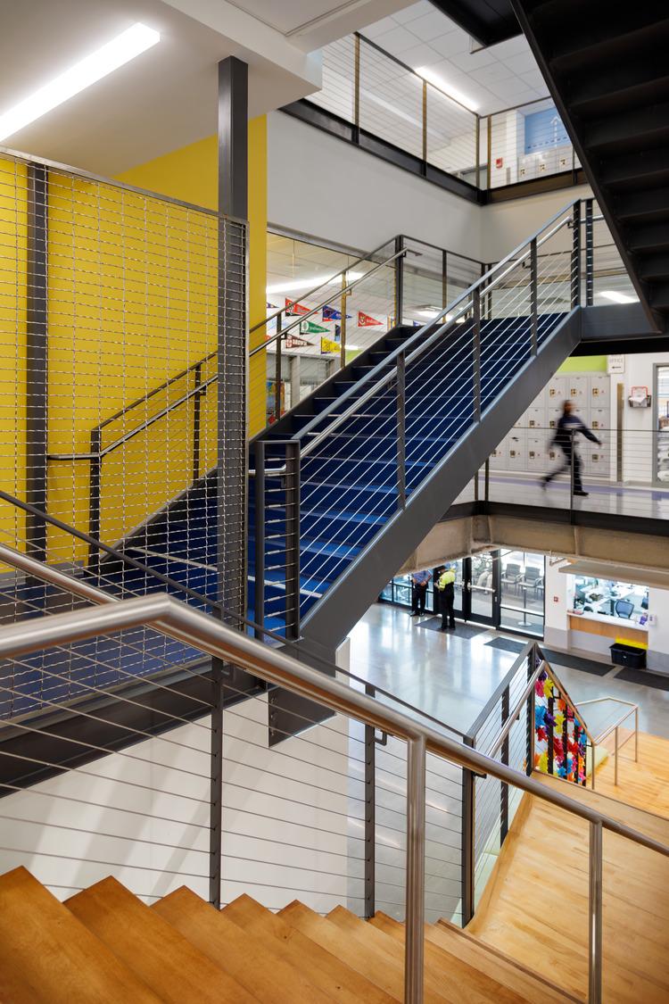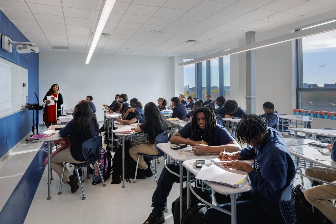 The new Roxbury Preparatory Charter School unites a once-disconnected student body in a modern, purpose-built learning environment located in the heart of Newmarket, an industrial area of Boston’s Roxbury neighborhood. The design of a new 83,500 sq ft, net-zero-energy-ready school empowers students to shape their academic futures while fostering a sense of community and renewal in a neighborhood long defined by societal challenges.