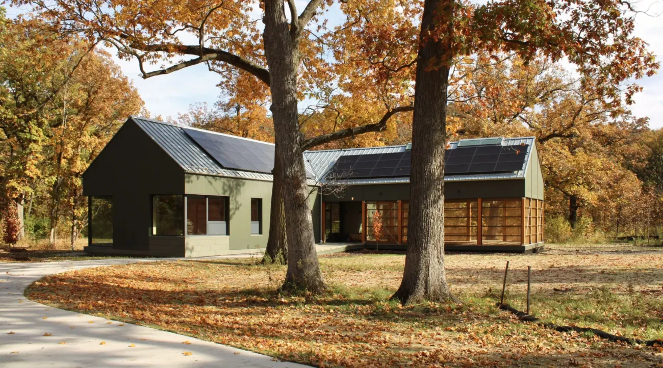 Nestled within the flatwoods along the Des Plaines River, the Ryerson Woods Education Facility acts as a beacon of both ecological education and environmental stewardship for the Lake County Forest Preserves and region at large. In addition to supporting educational programs in partnership with local schools and community organizations, the net-zero energy building serves as a trailhead for the surrounding 565-acre Ryerson Woods Conservation Area. Funded through a grant from the Illinois Clean Energy Community Foundation, the facility achieved Phius ZERO certification and uses 80% less energy than a comparable code-compliant building.